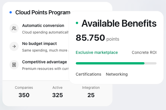 We work with major Cloud providers (AWS, Microsoft Azure and Google Cloud) to offer points that can be converted into resources that drive business growth and team qualification.